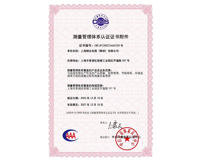 CMS Measurement Certificate